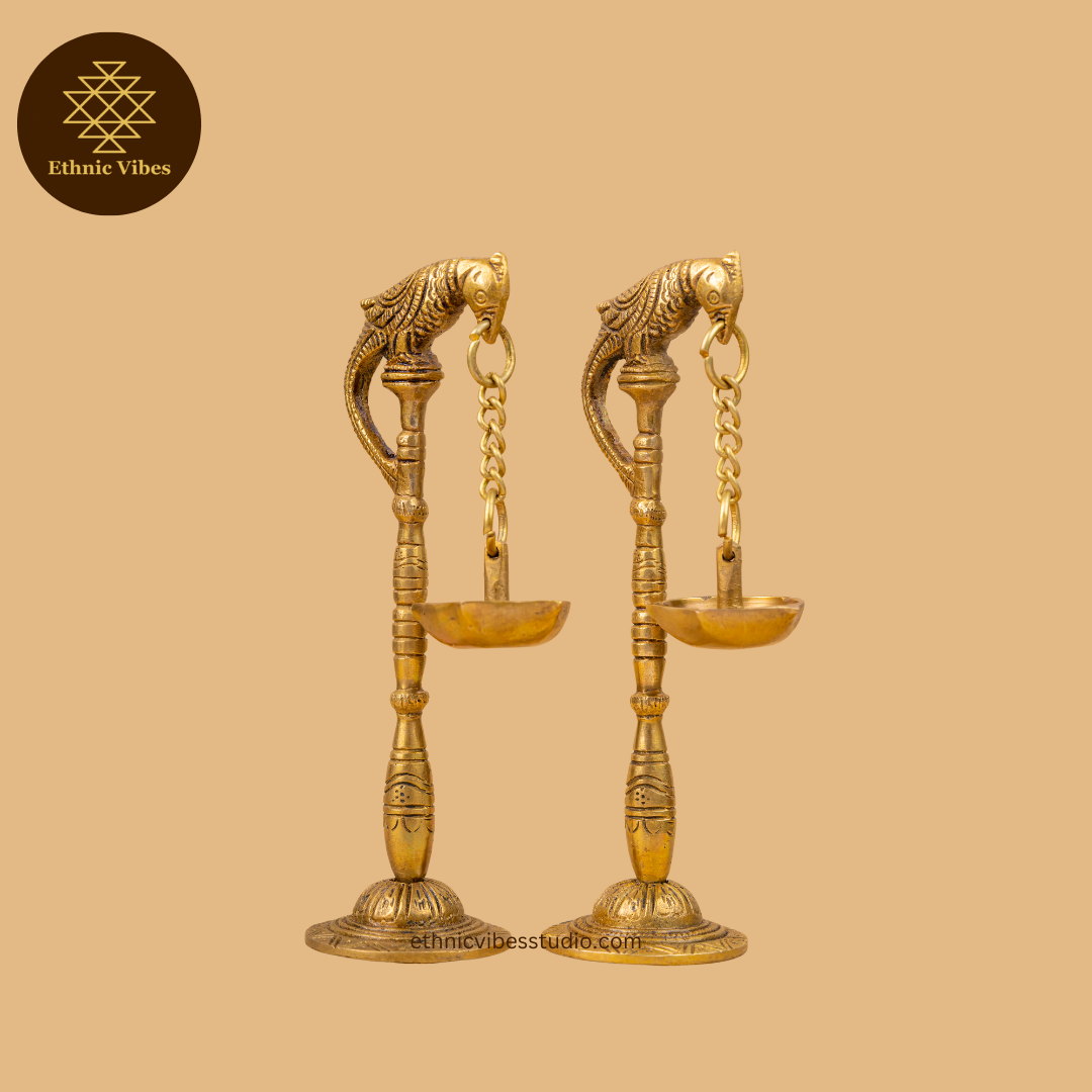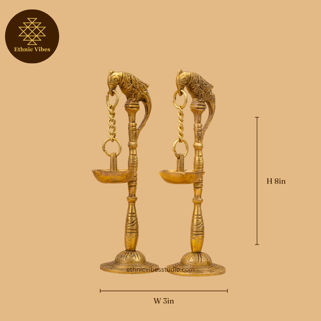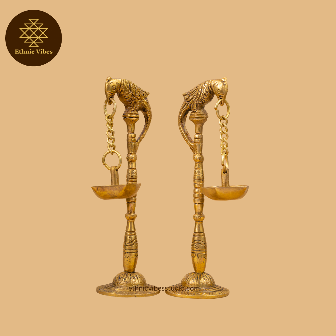 Our Parrot Hanging Diyas (Set of 2) adds elegance and tradition to any space, each featuring a delicate parrot motif. Perfect for creating a serene ambience, these Diyas are ideal for daily rituals or festive decor. A lovely set to cherish and display.