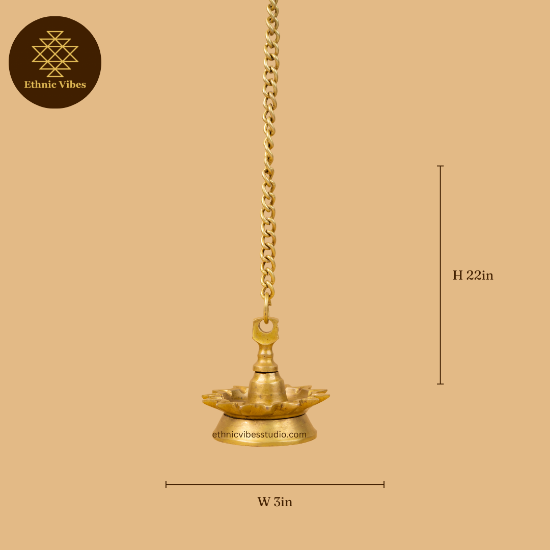 This elegant Brass Hanging Lamp brings a warm, inviting glow to your decor. Its minimalist design suits any style, making it perfect for daily use or festive decor. A timeless piece that blends tradition with modern elegance.