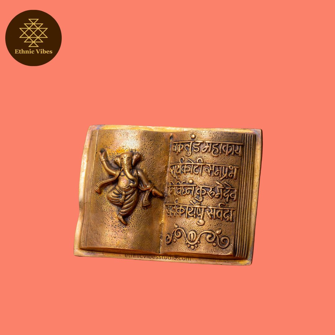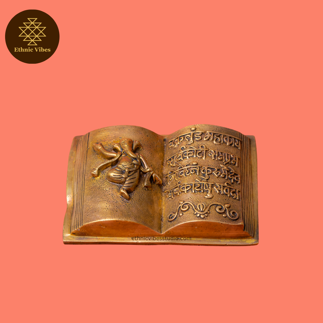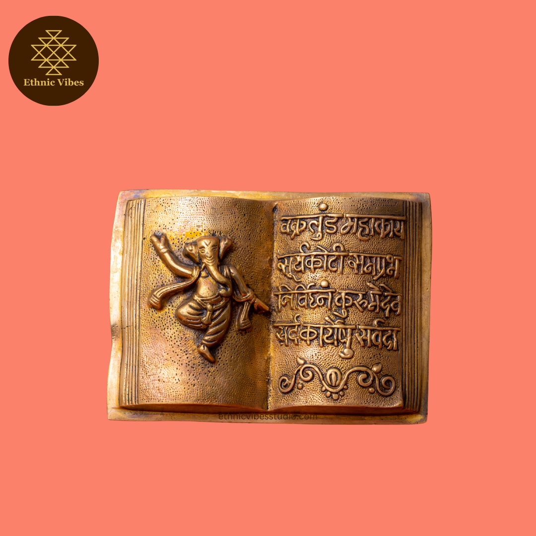 Our Book Ganesha statue is a unique depiction of Lord Ganesha with a book, symbolizing wisdom and learning. Crafted from Brass, it’s perfect for study areas or pooja rooms, adding a touch of inspiration and divine grace to your decor.