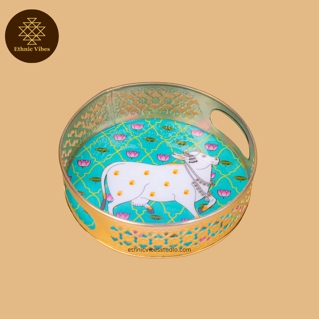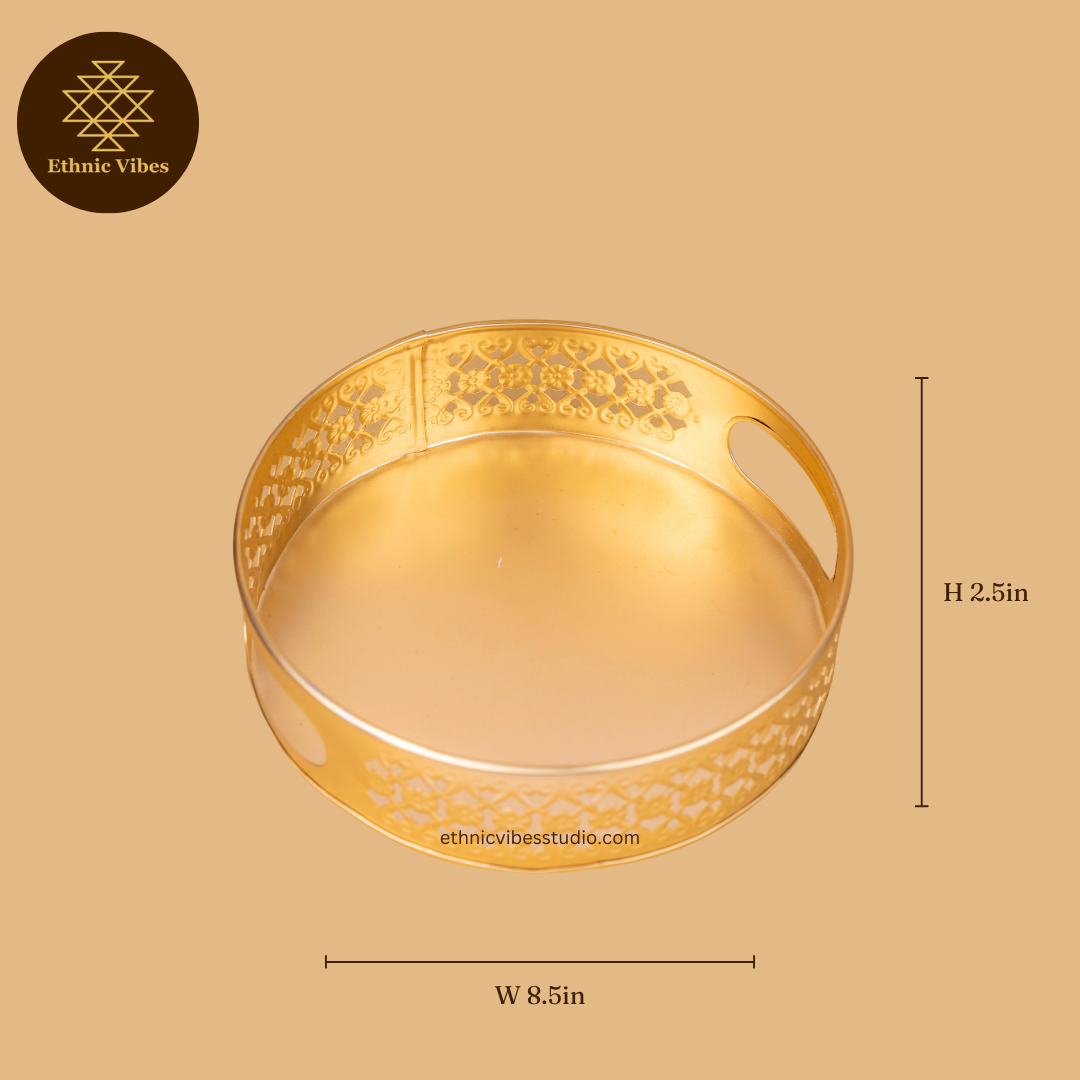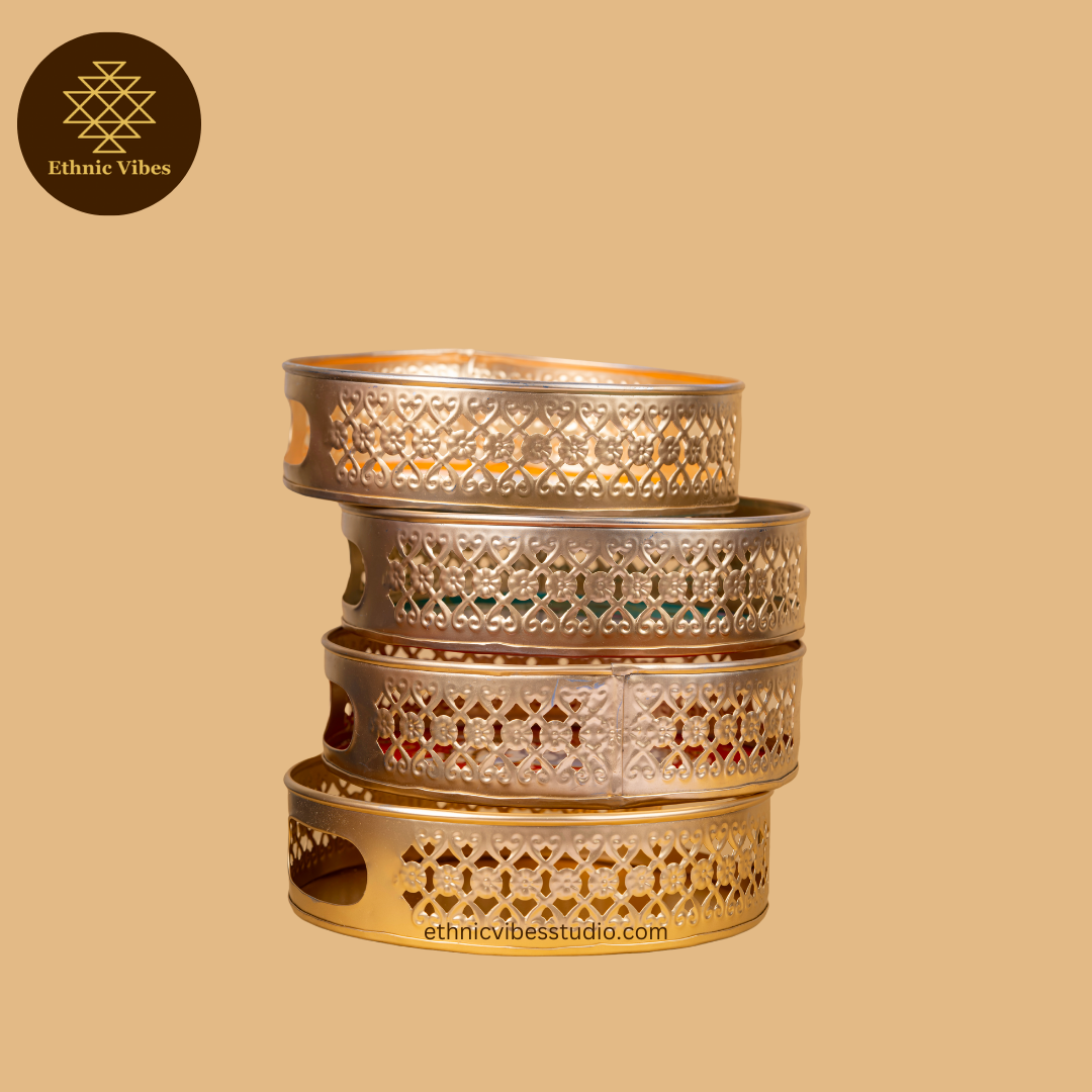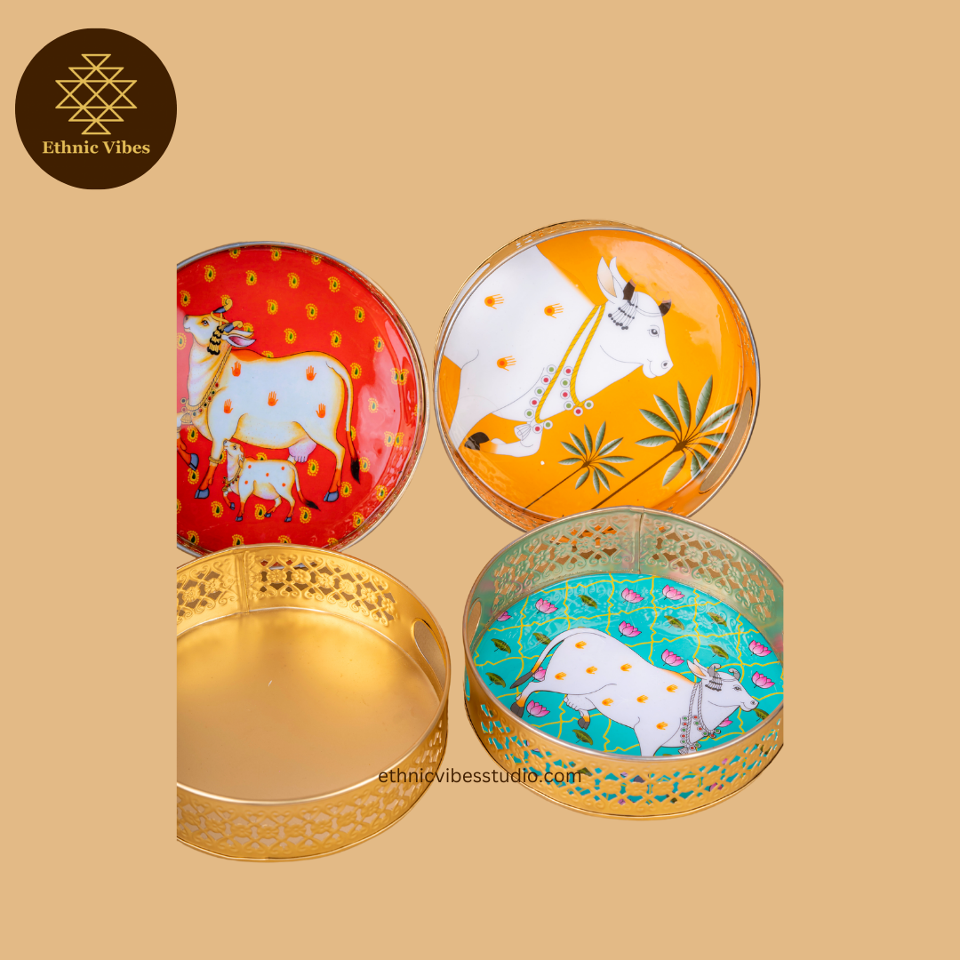 Add vibrance to your serving style with this Colorful Brass-Coated Trays-Set of 4 perfect for entertaining or festive decor. Each tray is beautifully crafted with a unique, colorful design, blending elegance with practicality. Ideal for hosting, it brings charm and a splash of color to any occasion.