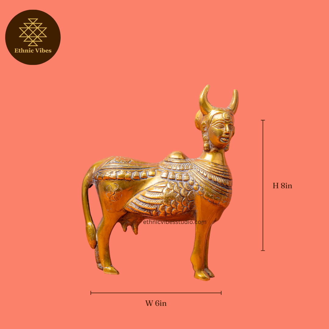 Our Surabhi Kamadhenu statue is a symbol of nurturing and abundance, crafted in Brass for a timeless look. Perfect for pooja rooms, it brings blessings and prosperity to any space, making it a cherished addition to traditional decor.