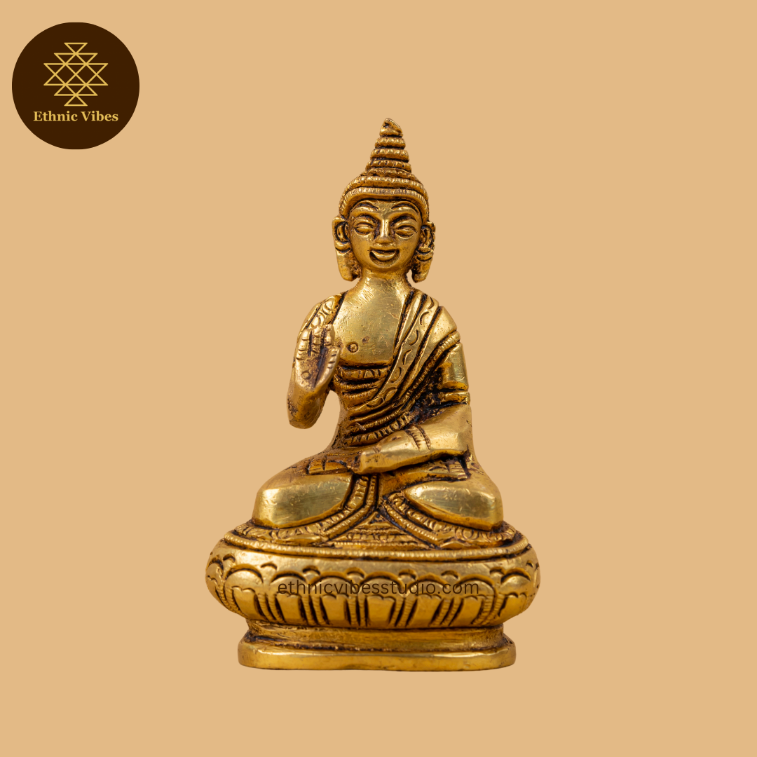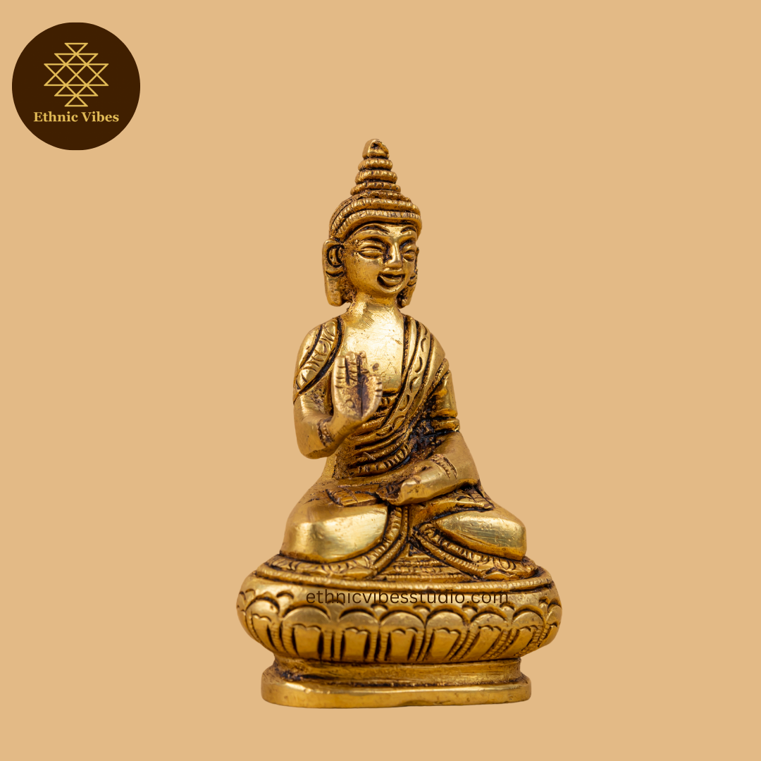 Crafted from premium brass, this serene Brass Buddha statue brings peace and tranquility to any space. Its intricate detailing and golden finish make it a striking addition to your home decor. Ideal for meditation corners, living rooms, or gifting, it exudes calmness and spiritual energy. A timeless piece that symbolizes wisdom and harmony.