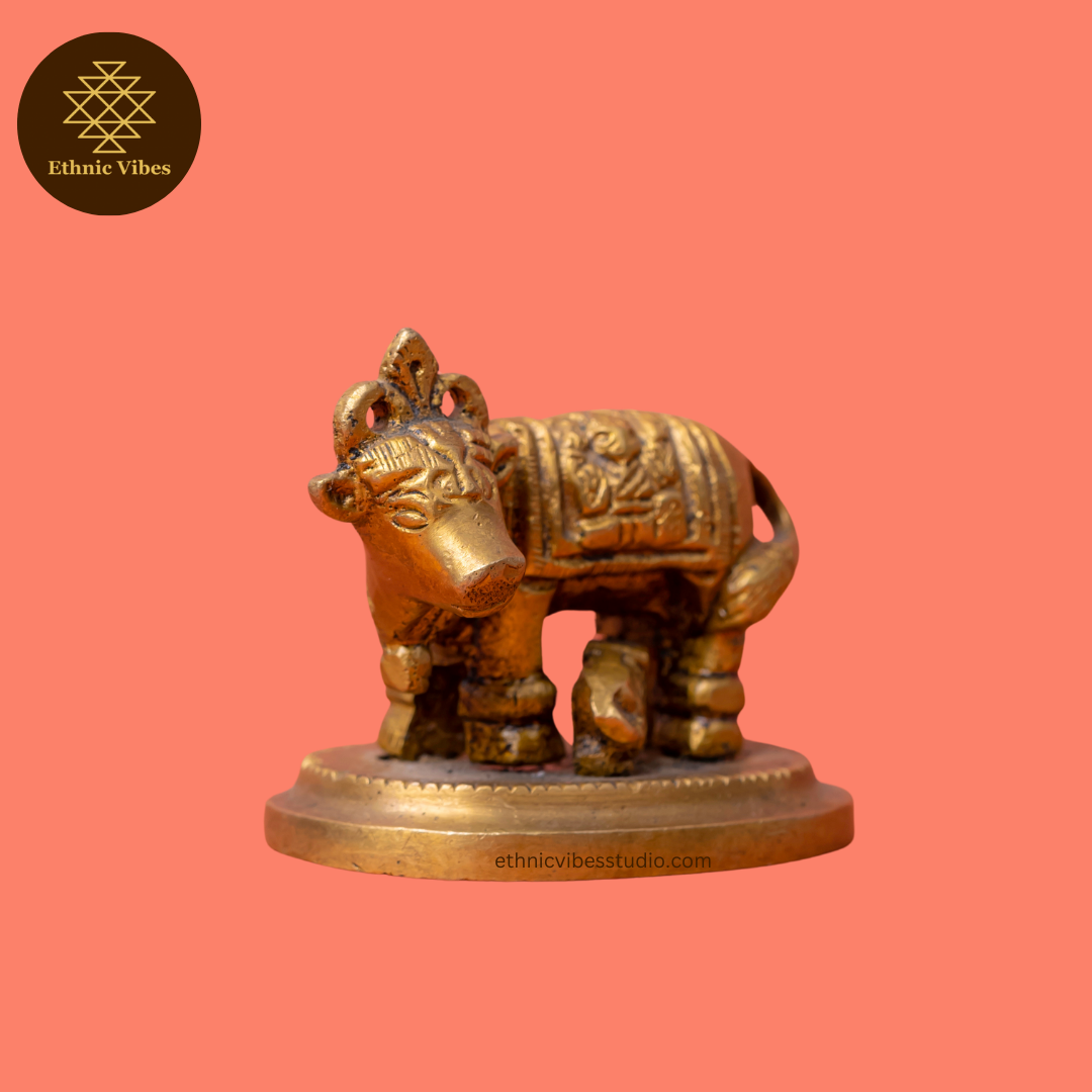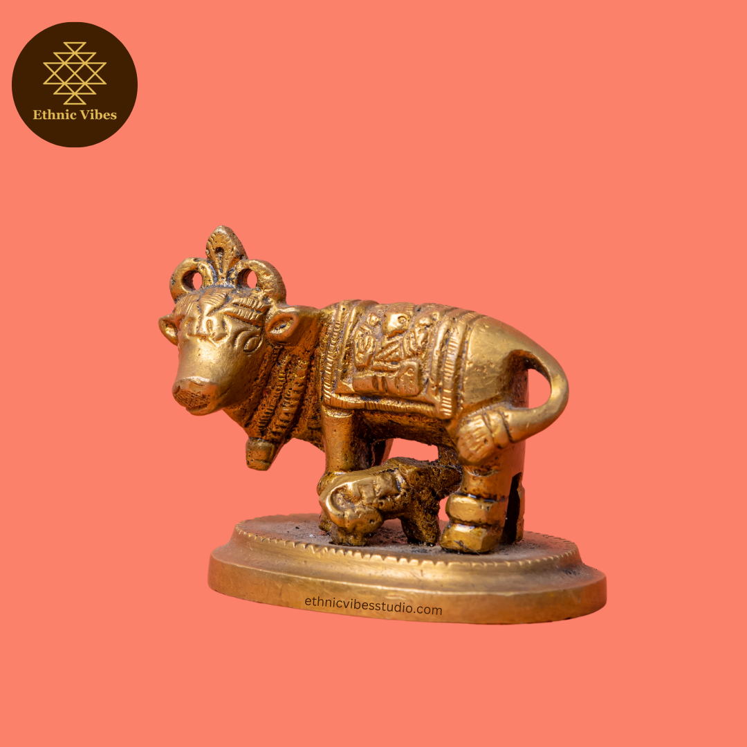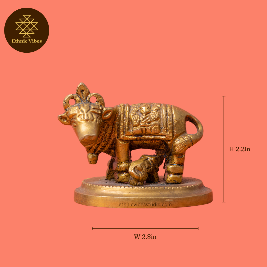 Our Cow and Calf Brass statue represents the essence of care and abundance, making it a beautiful and meaningful decor piece. Its fine detailing and polished finish make it an ideal gift for auspicious occasions, symbolising love and prosperity.